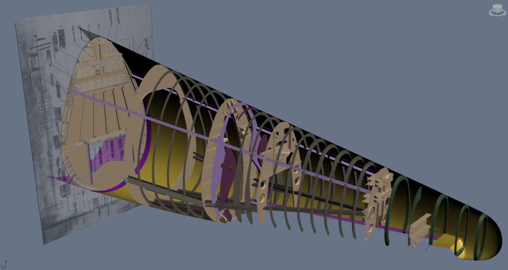 Modeling of the internal frame work is coming along nicely too. When the tail section falls off or takes critical damage, this structure will be seen in all it’s glory.